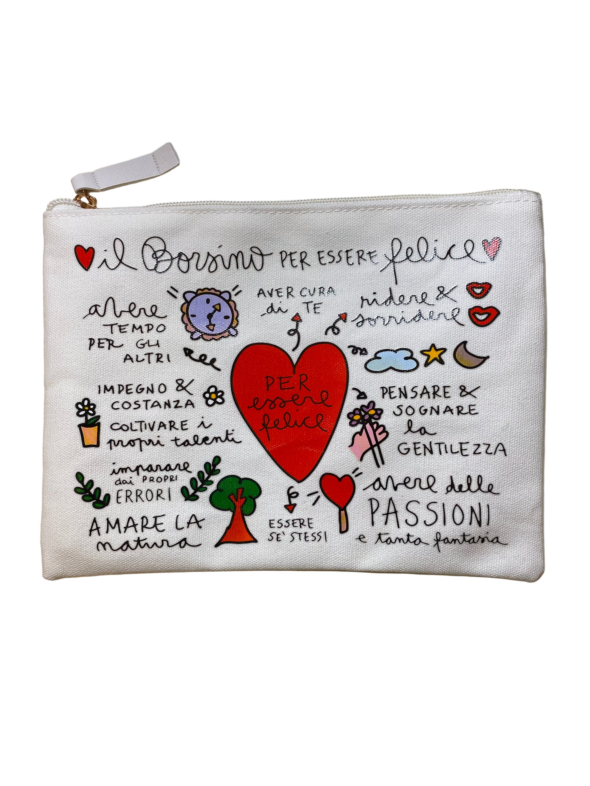 Borsino scritto con tutto quello che desiderate dedicare alla persona che lo riceverà. Lavabile in lavatrice. Misure: 19 x 24 cm