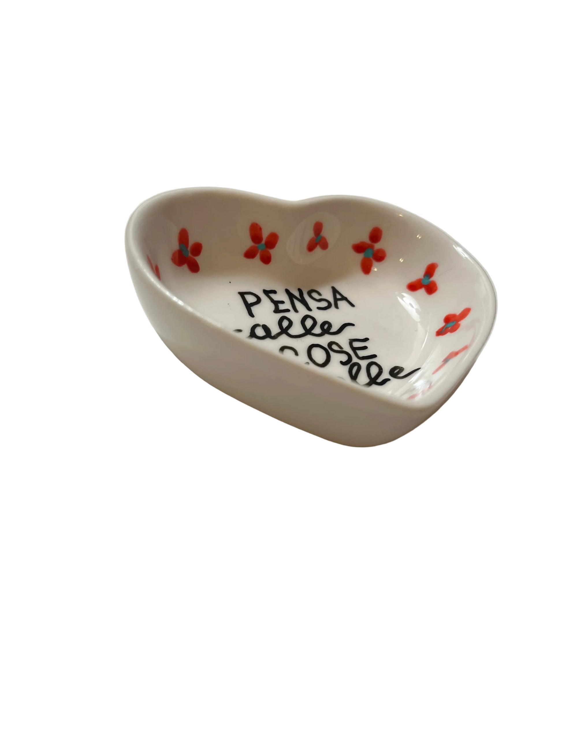 Piccolo cuoricino, è un pezzo unico, scritto a mano libera. Piccoli messaggi per sorridere, emozionarsi o sorprendere qualcuno a cui vuoi bene. Può essere utilizzato come svuotatasche o come oggetto decorativo