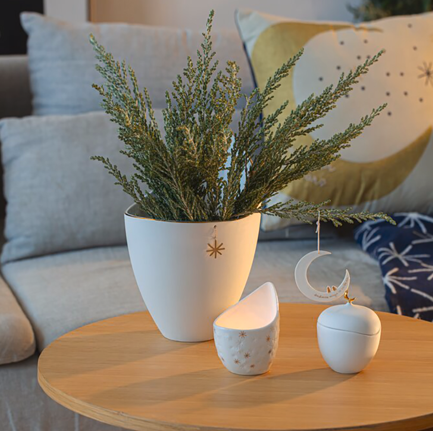 Decorazione natalizia apprendibile in porcellana.