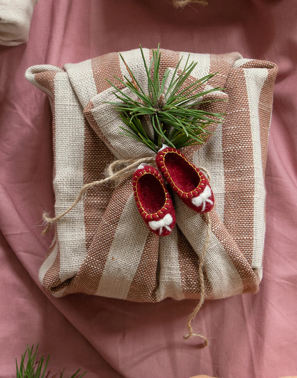 Scarpette da ballerina rosse in lana cotta della Nuova Zelanda, completamente realizzata a mano, per arredare un piccolo angolo della vostra casa.