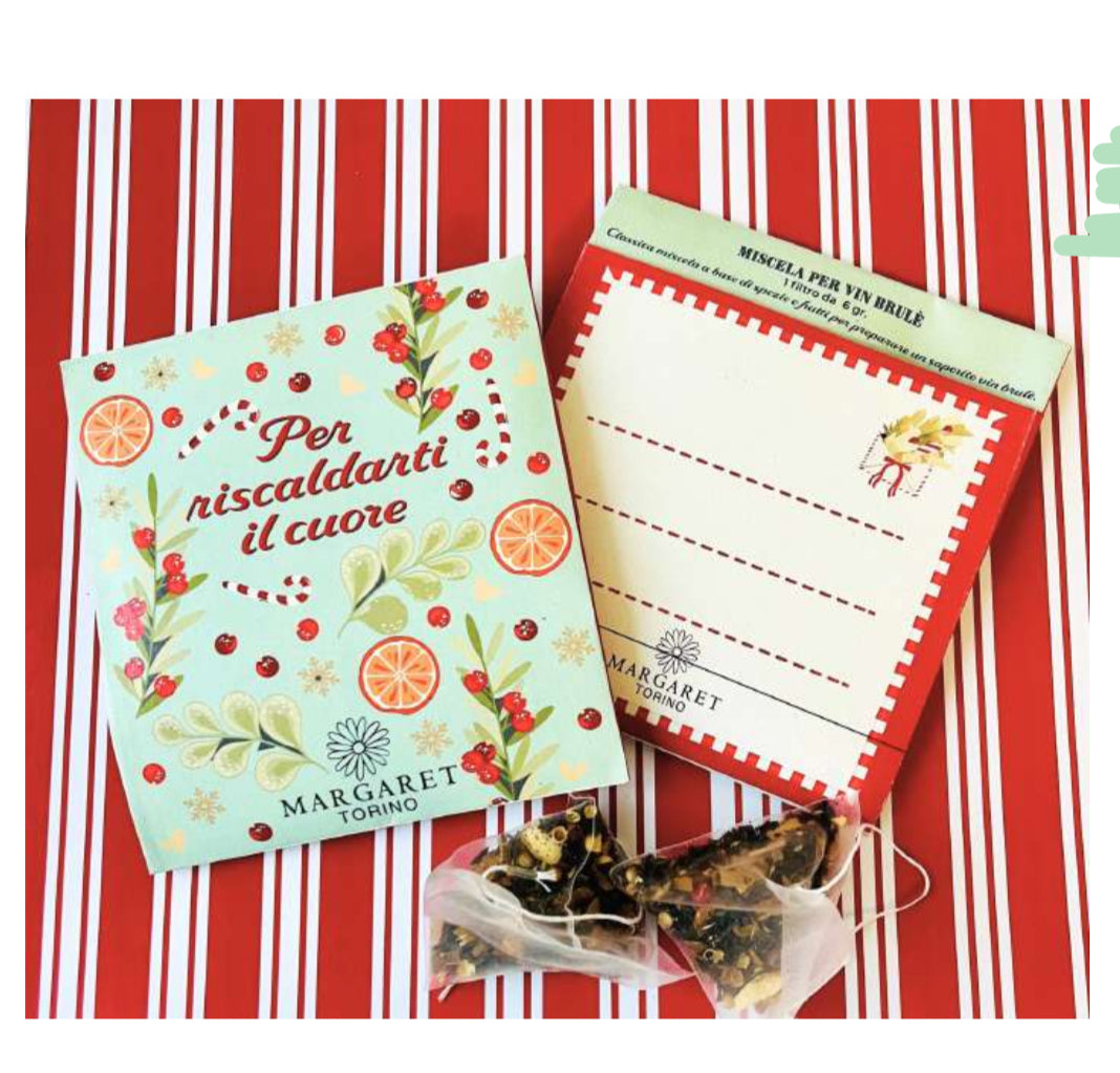 Un biglietto da scrivere con all’Interno "Il vin brulé, il calore dell'inverno in un sorso, un abbraccio avvolgente che riscalda il cuore e accende i sensi. Per preparare 750 ml di vin brulè.