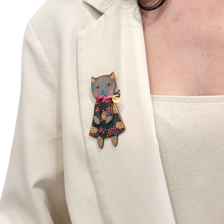 Spilla in legno gattina